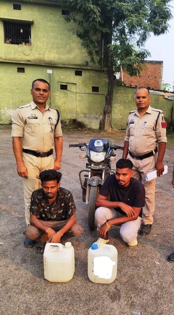 क्रान्तिकारी न्यूज़ रायगढ़, 17अक्टूबर । पुलिस अधीक्षक दिव्यांग पटेल के दिशा-निर्देशन पर जिलेभर में त्योहारी सीजन को देखते हुए अवैध शराब तस्करी पर लगातार कार्यवाही जारी है। इसी कड़ी में दिनांक 16 अक्टूबर 2025 को कोतरारोड़ और पूंजीपथरा पुलिस को बड़ी सफलता मिली है। मुखबिर की सूचना पर कोतरारोड़ पुलिस ने मोटरसाइकिल से शराब परिवहन कर रहे दो आरोपियों को दबोच लिया। पुलिस ने उनके कब्जे से 20 लीटर हाथभट्टी से बनी महुआ शराब और हीरो एच डीलक्स बाइक (क्रमांक CG-13-AC-0948) जब्त की है।