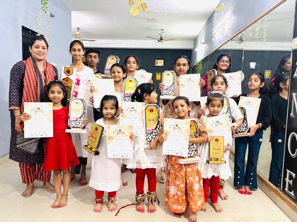 प्रथम पुरस्कार दिविशा शर्मा , ह्रितवी अग्रवाल,कियाना मोटवानी ,श्रीनिका अग्रवाल और चेतल चौहान ,अनुजा बाजपेयी द्वितीय पुरस्कार, कृष्णावी सिंह ,नाव्या सिंह, राव्या कौर टुटेजा ,अवंतिका मेहता , दिविशा बोंडिया ,राधाया अग्रवाल अपनी प्रभावशाली कथक प्रस्तुति के लिए रहीं इसी तरह कार्यक्रम में उपस्थित दर्शकों और निर्णायक मंडल ने सभी बचों के प्रदर्शन की जमकर सराहना की। इस अवसर पर, कार्यक्रम में आयत डांस एकेडमी की नृत्य शिक्षिका एवम संचालिका गुरु तब्बू परवीन जी को वस्त्र और स्मृति चिन्ह भेंट कर ज्ञान स्रोत गुरु सम्मान से सम्मानित किया गया, जो उनकी छात्राओं की सफलता में उनके अथक परिश्रम मार्गदर्शन और योगदान का प्रमाण है।